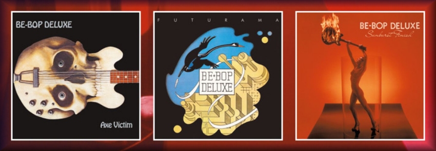 Cherry Red Records are the present curators/distributors for the Be-Bop Deluxe back catalogue, which compromises of 5 studio albums and 1 live release. The band had a relatively short life-span, with a recording career only covering across a 5 year period, and by the Autumn of 1978, band-founder, leader and major songwriter, Bill Nelson, announced that Be-Bop Deluxe were now finished. However during that period of time, the band achieved a passionate loyal following in the UK, and from 76′ – 78′ they regularly toured North America as well. Now after half a century since the band’s first release, Cherry Red Records have chosen to reissue the albums once again, but this time spread across 2 different 3-CD boxed sets. The first one covers their very first 3 studio albums, and there’s a second one that includes the live album, as well as the band’s final 2 studio albums. And it’s the first one that I’m reviewing here, which includes Axe Victim (1974), Futurama (1975), and the stunning Sunburst Finish (1976).