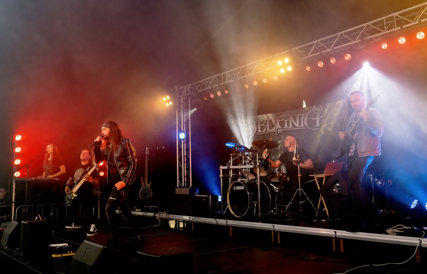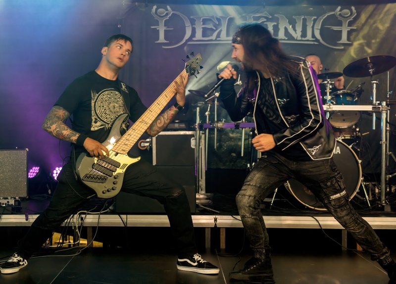 Rushing back to the Kingfisher stage I was able to catch Delfinia. Another band that I had listened to on YouTube and liked what I heard, but I have seen enough bands to know that playing live is the true acid test. A UK based Ukrainian power metal band fronted by Daria and Konstantin Naumenko, they seemed to be an ideal ‘leather and lace’ combination of vocals. Daria had a voice like a flower but there was nothing delicate about her strong delivery and, looking like a young Paul Rodgers, Konstantin gave off an Iron Maiden vibe.
