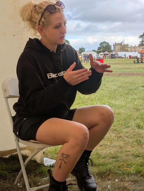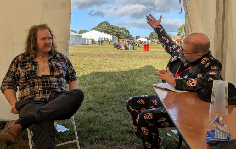 Next, I happened to bump into the irrepressible Tom Morris of the band Argham. Although no interview had been arranged, I knew that he liked to talk almost as much as me and decided to ask him a few questions, and avoid his terrible jokes, before he meandered off into the crowds that had now been allowed through the gate.