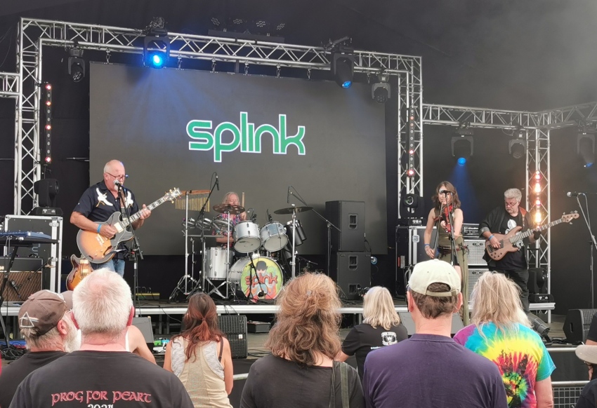 Splink say that they play ‘no rules music’, so I don’t need to describe their sound as jazz-folk-prog! When a violin is the key instrument, there’s bound to be a folk element, and Vicky Ings plays with passion and a smile; the joy of the music shines through. Matt James plays some tasty guitar, and they breeze through various styles and moods as their set progresses, but it’s always fun and engaging. They are in their element in a festival atmosphere, and there are many smiles around me as their performance comes to a close. We will be seeing more of Splink I’m sure. [Graham Thomas]