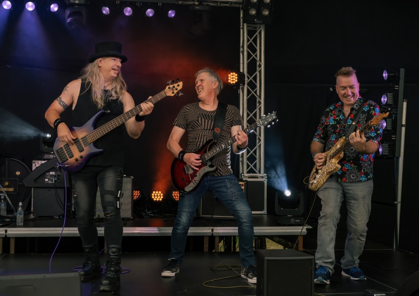 Sat in their transport that was more like a house on wheels than any camper van we chatted and he told me a potted history of the band, their inspiration and their views on the music business. Formed 10 years ago they have supported such luminaries as Status Quo and Deep Purple and their last three albums have all performed well in the indie charts, getting ever more successful as their audience grows. They have a familiar sound, and they proudly admit that they are influenced by such acts as Queen, ELO, Pilot and 10cc. All of which can be heard in their albums if you listen closely enough. Greg enjoys music and told me that he is not afraid to make a song that is influenced by any band, as long as it works, he is happy.