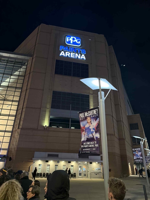 This oasis of calmness felt very much needed before I faced the throng of thousands of fans waiting to enter the PPG Paints Arena. Large signs read, “Welcome back to PPG Paints Arena, Paul!”, and I discovered he’d actually been the first artist to play at this venue with two performances in 2010, when it was known as the Consol Energy Center. He’d also played here in 2014. Prior to that, he’d played at the futuristic Civic Arena with the Beatles in 1964 and on his first solo world tour in 1990. This arena had an incredible, giant circular dome that could open to reveal the sky, but it was sadly demolished in 2010.