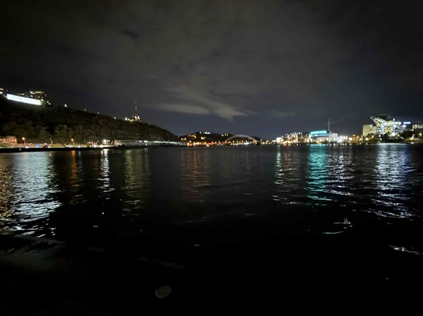 The weather in Pittsburgh was much colder than in DC, so I was wearing three layers. Snow had been forecast for later that evening, which didn’t seem fair given that it wasn’t even winter yet. I had two hours to kill before the concert, so I stopped at a taco bar for some sustenance before doing a little more night tourism just to see Pittsburgh, as I had never been here before (and was not sure if I’d return). The city lies at the confluence of two rivers, and I walked to the very end of Point State Park to see where two become one. The park, surely a tourist hotspot during the day, was deserted at the pitch dark of 6:30 PM, and I was able to enjoy the massive space to myself, with the Allegheny on my right and the Monongahela on my left, forming the Ohio River that rippled in front of me.